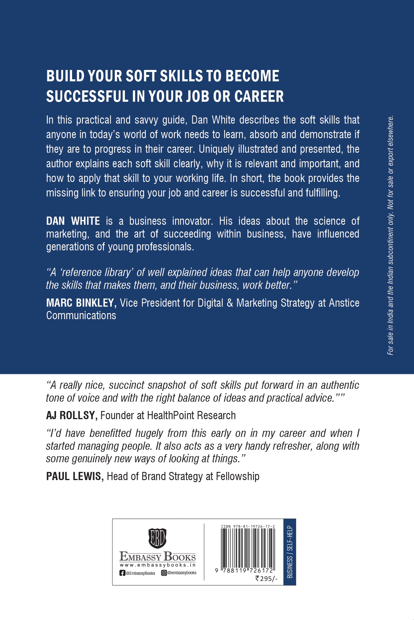 In this practical and savvy guide, Dan White describes the soft skills that anyone in today s world of work needs to learn, absorb and demonstrate if they are to progress in their career.